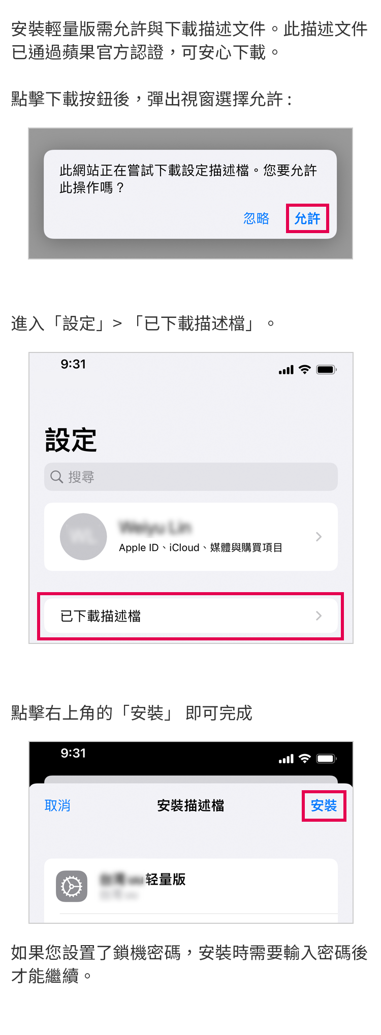點擊上方 iOS 輕量版 按鈕下載安裝 APP